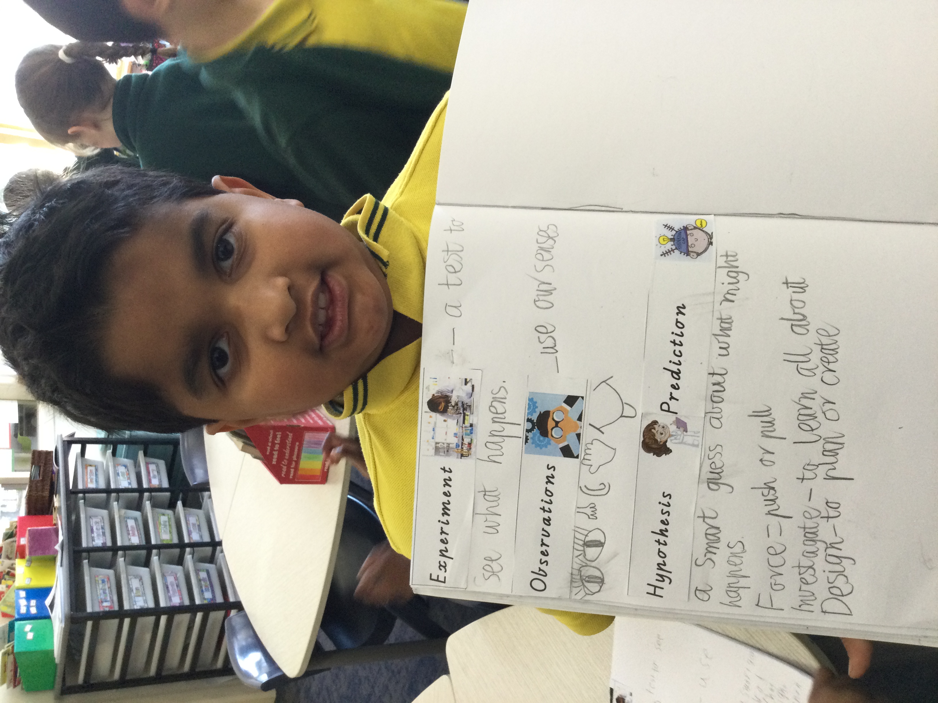 Our latest Science unit had lots of specific vocabulary to unpack, such as experiment, hypothesis, investigate, discover, and force. We discussed these terms as a class, making connections to previous lessons and thought of questions we could ask using our new vocabulary. These were added to our Curiosity Wall, which we will keep track of throughout the unit.