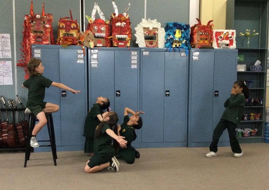 The beginning of our term focussed on ‘The Dragon Awakens’ dance which culminated in a performance at school assembly, coinciding with Chinese Lunar New Year. Students took the lead when choreographing the piece, including wearing the head pieces that they designed and created in Art. We thank Ms Farlow for supporting us with this. Students have learned that dance is a universal human expression used for storytelling, ritual, and celebration and deeply reflects cultural identity. They appreciate that in some cultures it can take many years of training to be given the privilege of becoming a performer. The term is concluding with students learning how to read music. The sound of Hot Cross Buns can be heard from the Performing Arts room as experts across classes support their peers as they learn to read and play music.