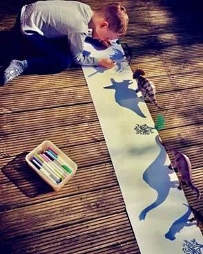 Lay your paper down and stand your toys at the edge of your paper, on a hard flat surface in the light so you can see the shadow on your page.