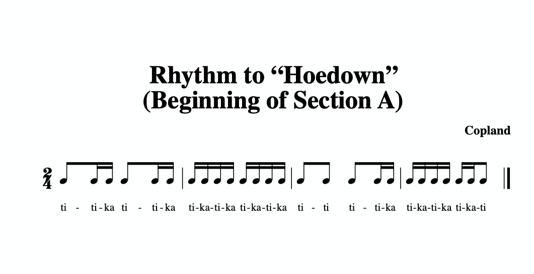 Listen to this piece of music called 'Hoe-Down' composed by Aaron Copland: Click here