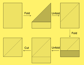 Find a piece of white paper and make a square by folding one corner down (as in the yellow diagram).