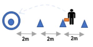 Place 3 objects or cones 2m apart.