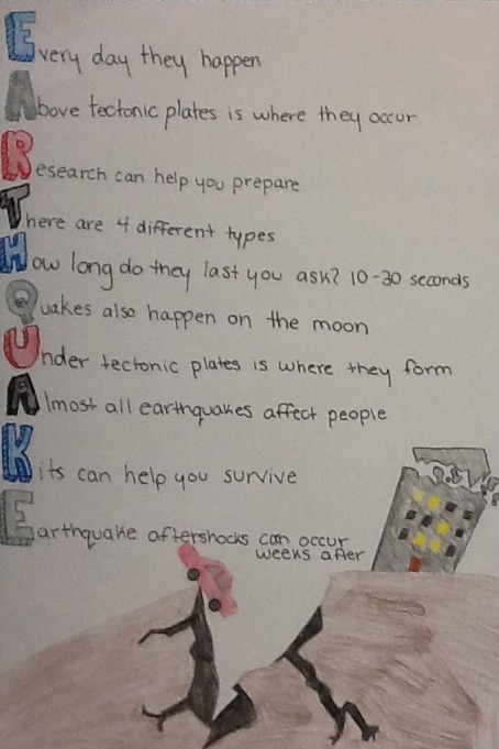Create another poem using the same element but a different focus e.g. if your poem was a positive poem about the element earth, create a poem that is about an earthquake (see example below).
