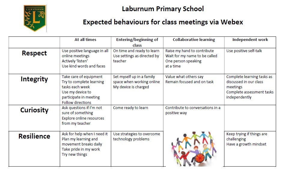 I can reflect on the Webex behaviours I demonstrated during term 2 Learning from Home