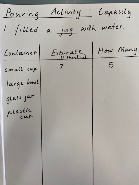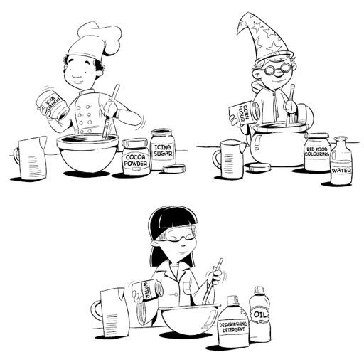 For each picture, record what you think the person is making and draw a small picture of what you think each mixture may look like.