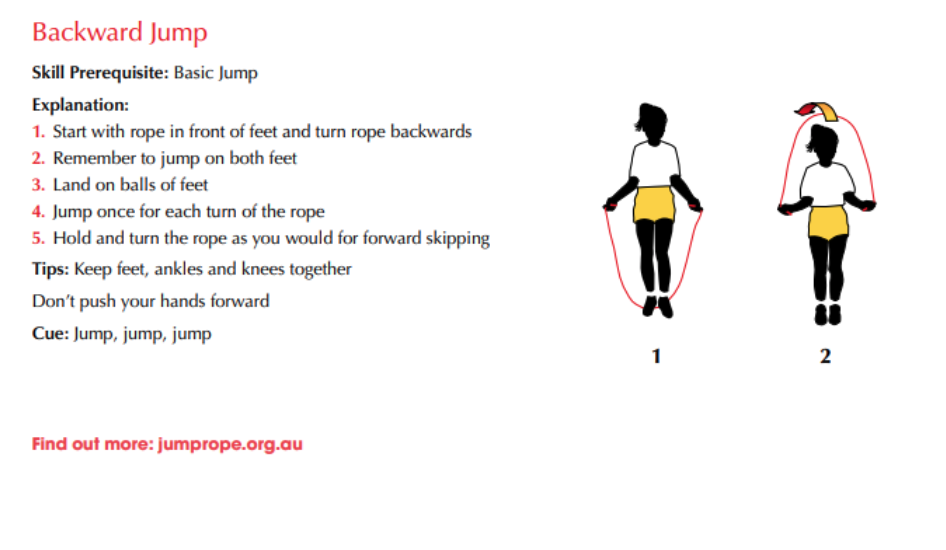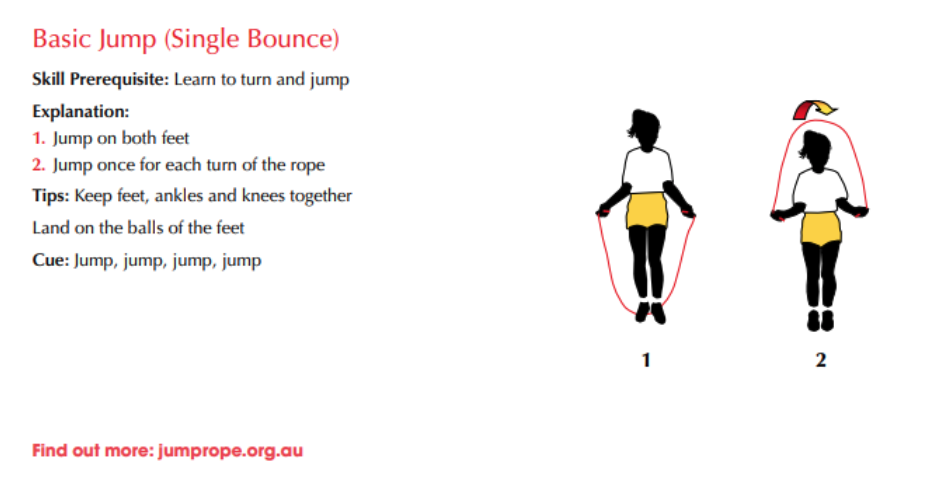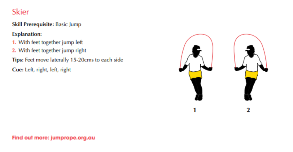 Last week our focus was developing our skipping skills. Hopefully most of you have had some practise with some of the skills you learnt. This week we are going to continue practising so we get better each week.