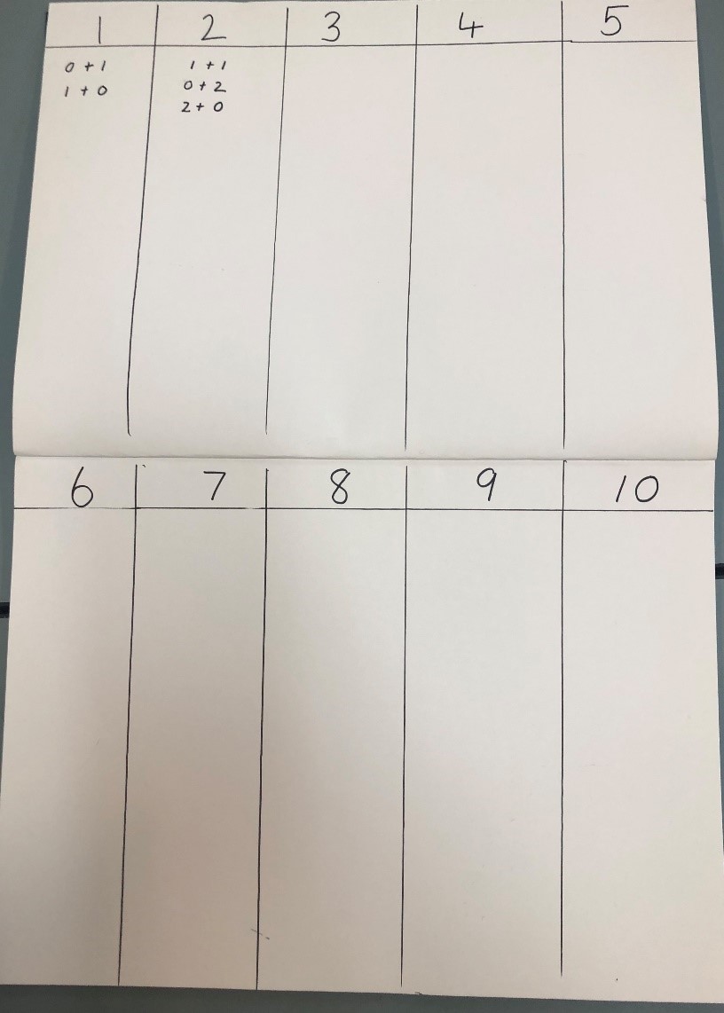 Wednesday: Maths - Revising number facts to 10 (come with a ruled up facts to 10 table)
