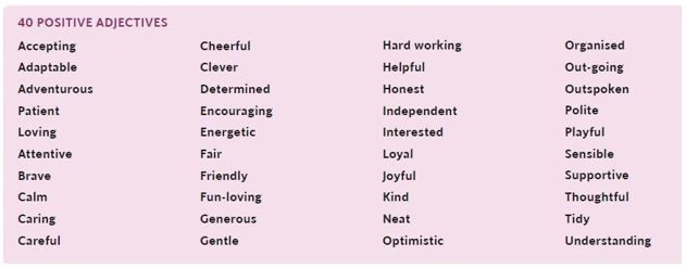 Personal strengths are positive parts about ourselves. They are adjectives we use to describe ourselves and how we treat others.