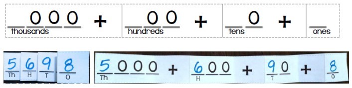 Expanding numbers means to split the digits so that each place value is its own number. This shows each numeral’s value.