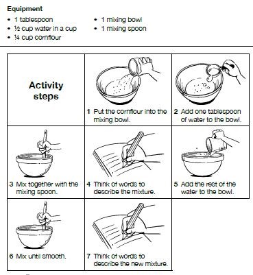 - Click here to find out how Oobleck is made on ABC Education. Use the following equipment and steps to create your own Oobleck. Record steps 4 and 7 in your scrapbook. Use words to describe how the mixture feels and looks.