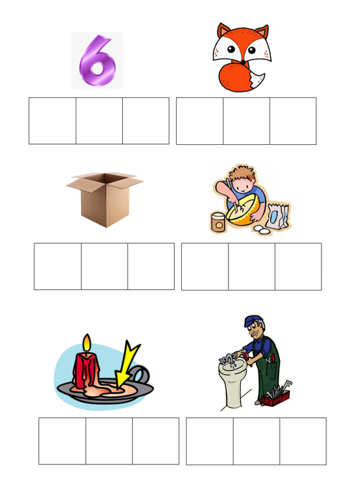 Write the beginning, middle and end sounds for each of the pictures.