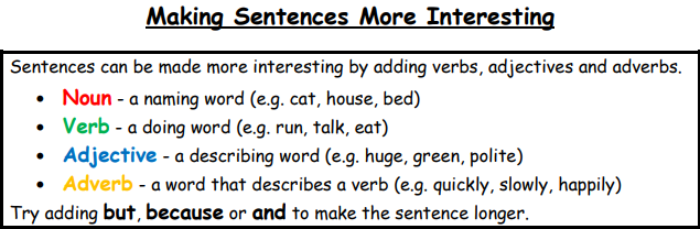 Now use nouns, verbs, adjectives and adverbs to make the sentences below more interesting.