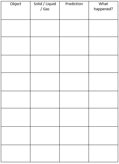 Once you have made your predictions, place your objects somewhere warm and leave them for 1 to 2 hours.