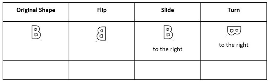 We are learning about transformation of shapes so we can classify flip, slide or turn